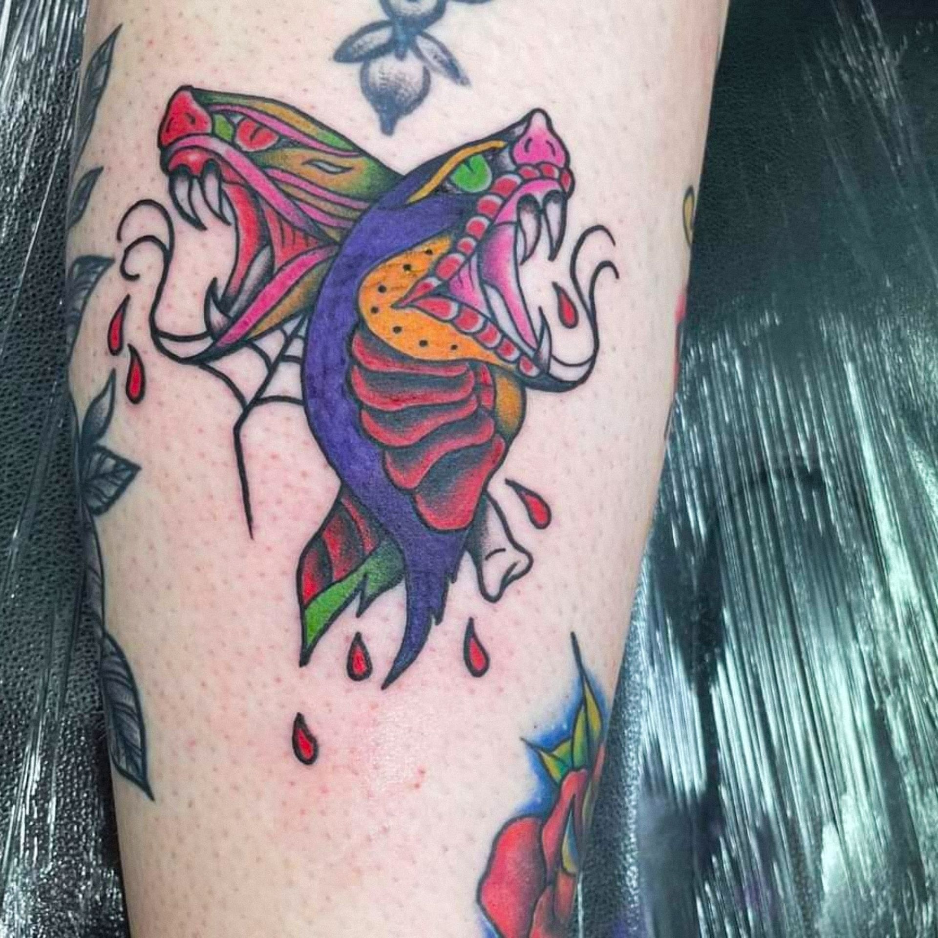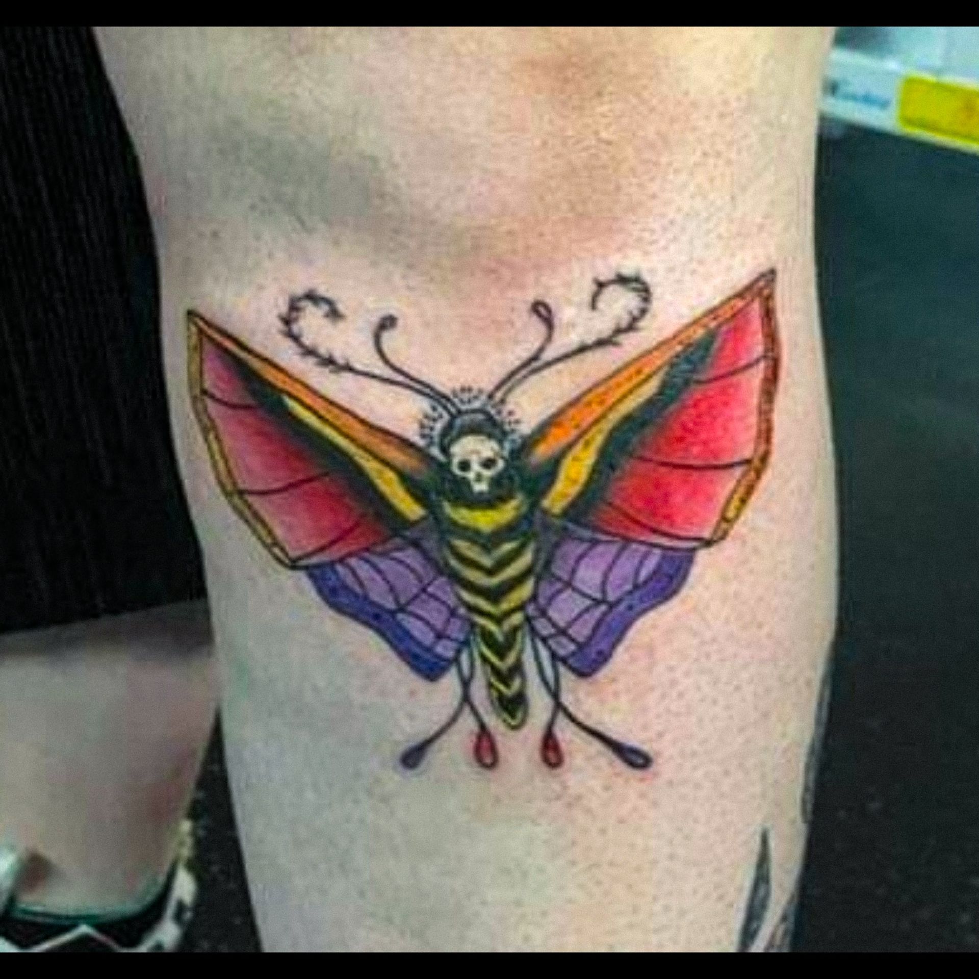 Traditional Butterfly Tattoo - the use of a bold, bright colour palette can create some superb designs and can be combined with various ideas such as a vine or stunning floral piece. The butterfly is to represent freedom or transformation and can have extraordinary eye catching results.