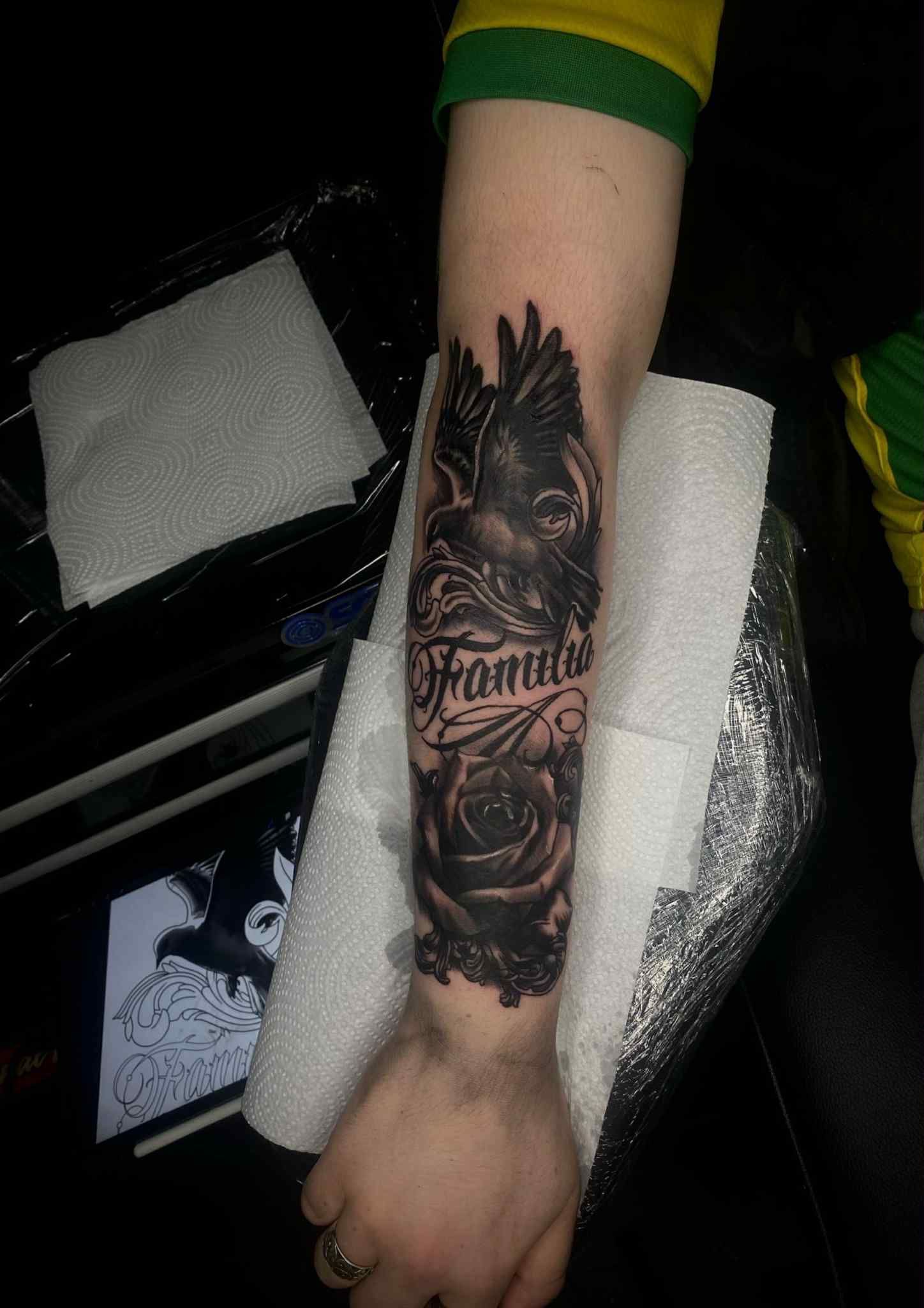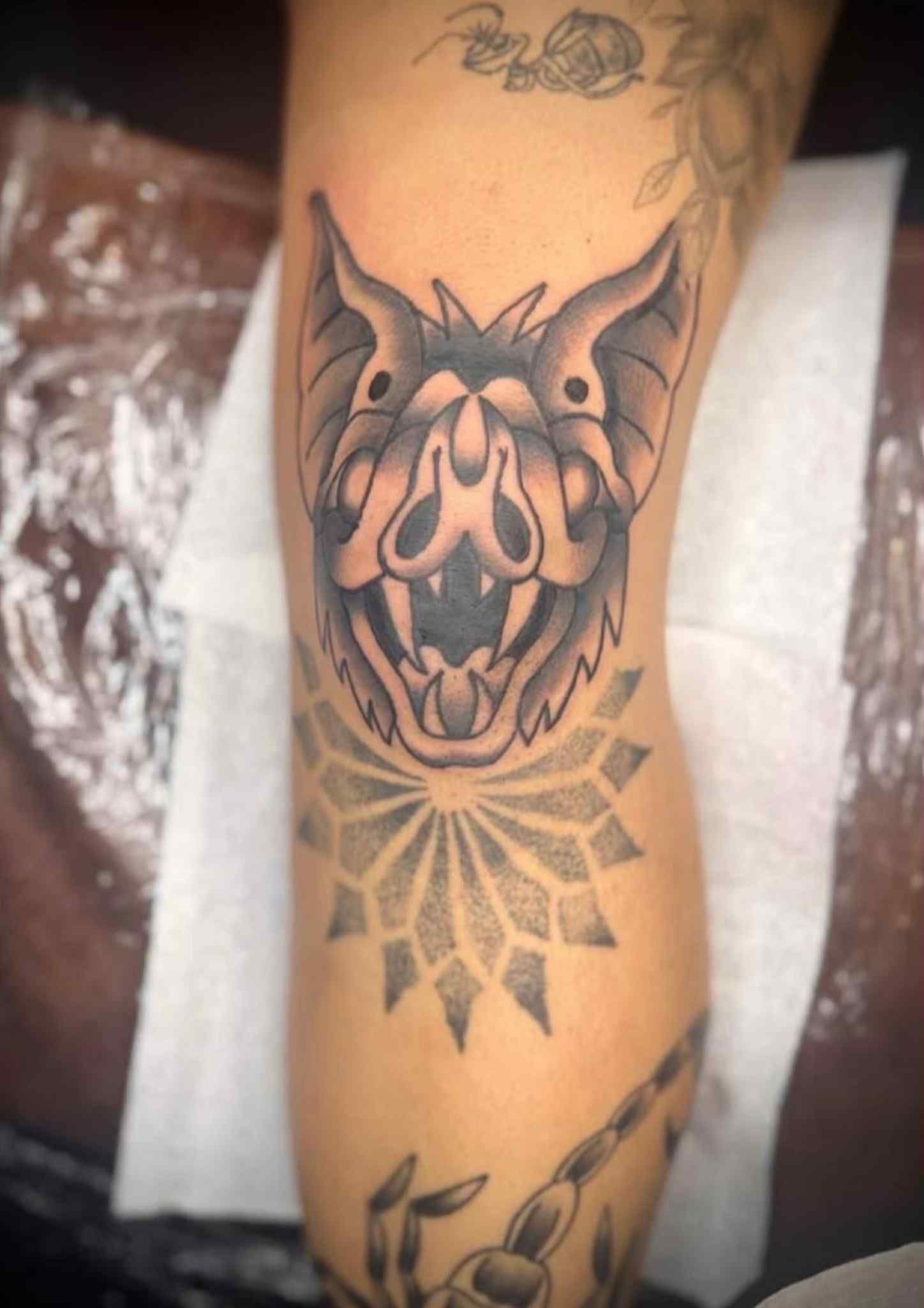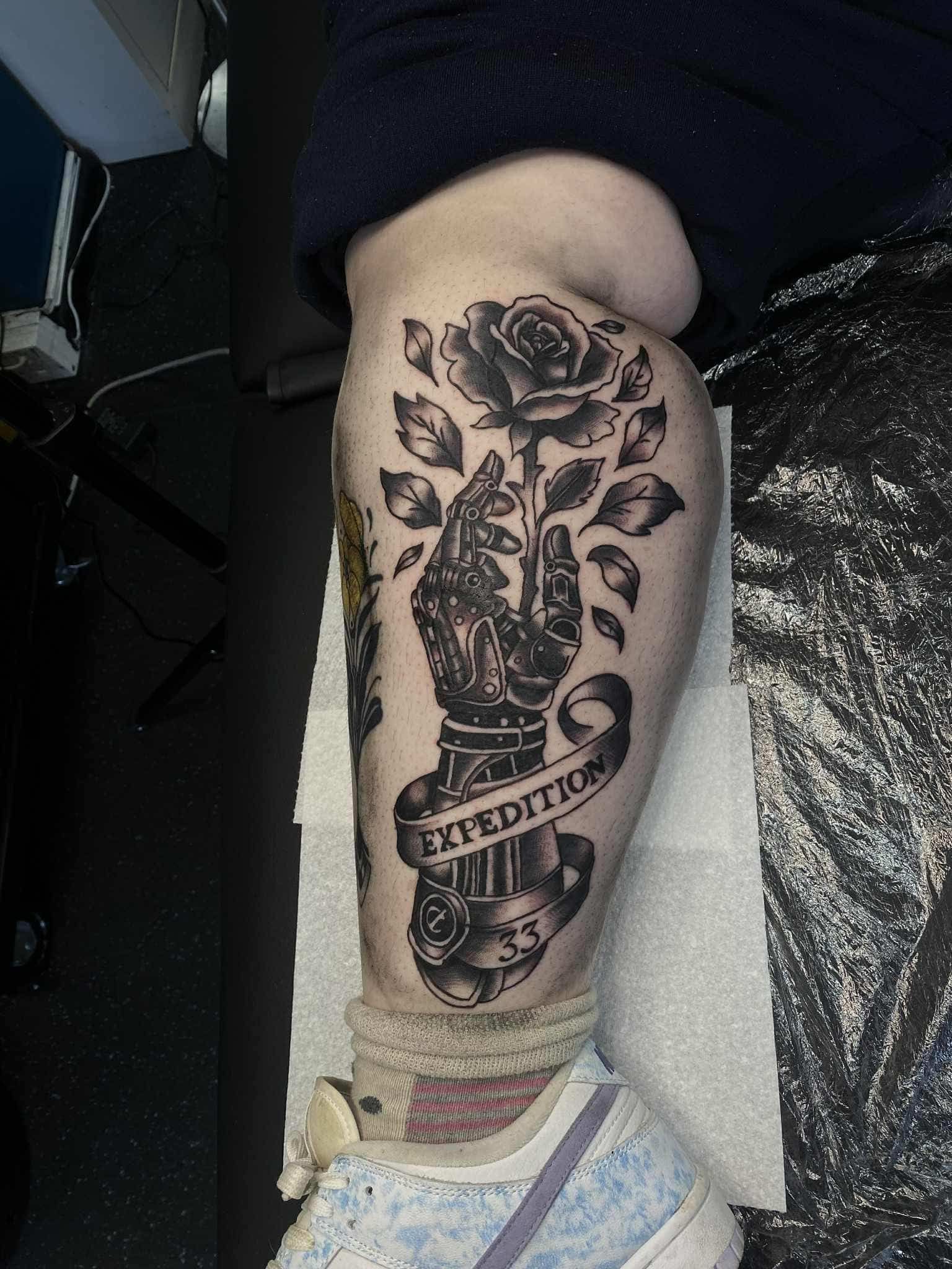 I’ve worked at two other studios and feel very lucky to have landed a spot at this one. Growing up, there were so many different things I wanted to do for a career. I studied art and design at college, then prop design for film, theatre, and live events at uni. While that was fun, tattooing was always the constant for me.